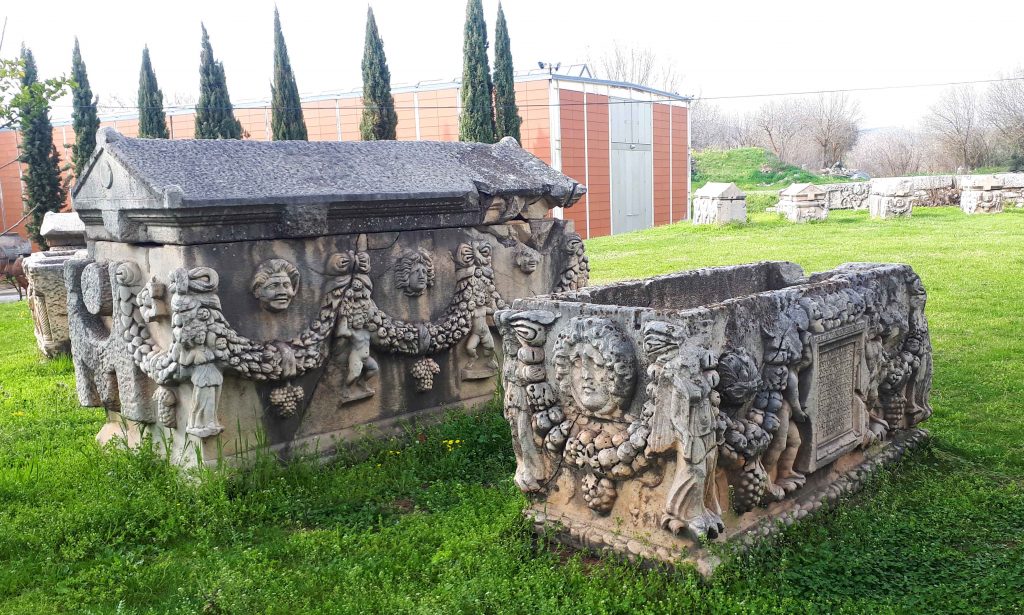 Antik kente ilk girdiğinizde her biri ustalıkla işlenmiş lahitler gözünüze çarpıyor. Lahitlerin üzerlerindeki yazıtlarda kimin tarafından işlendiği, kime ait olduğu belirtiliyor.